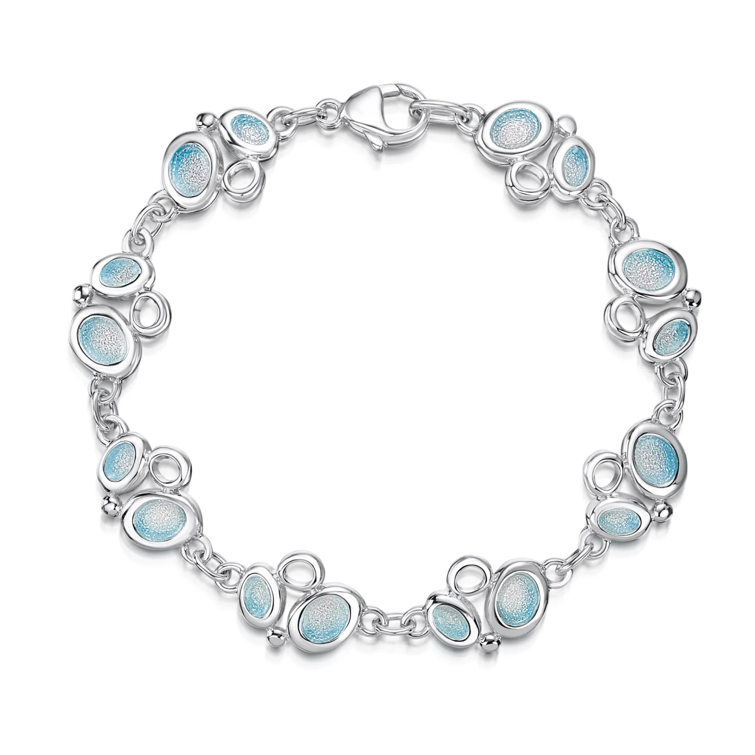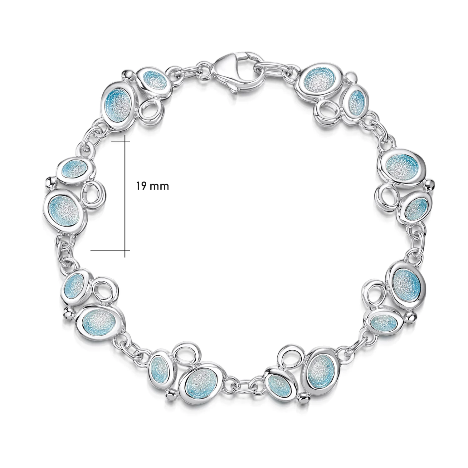 This Arctic Stream bracelet has eight enamelled links featuring an ice, rock and water design, beautifully highlighted in Sheila’s ‘Arctic Blue’ enamel. Each link is approximately 19mm wide.