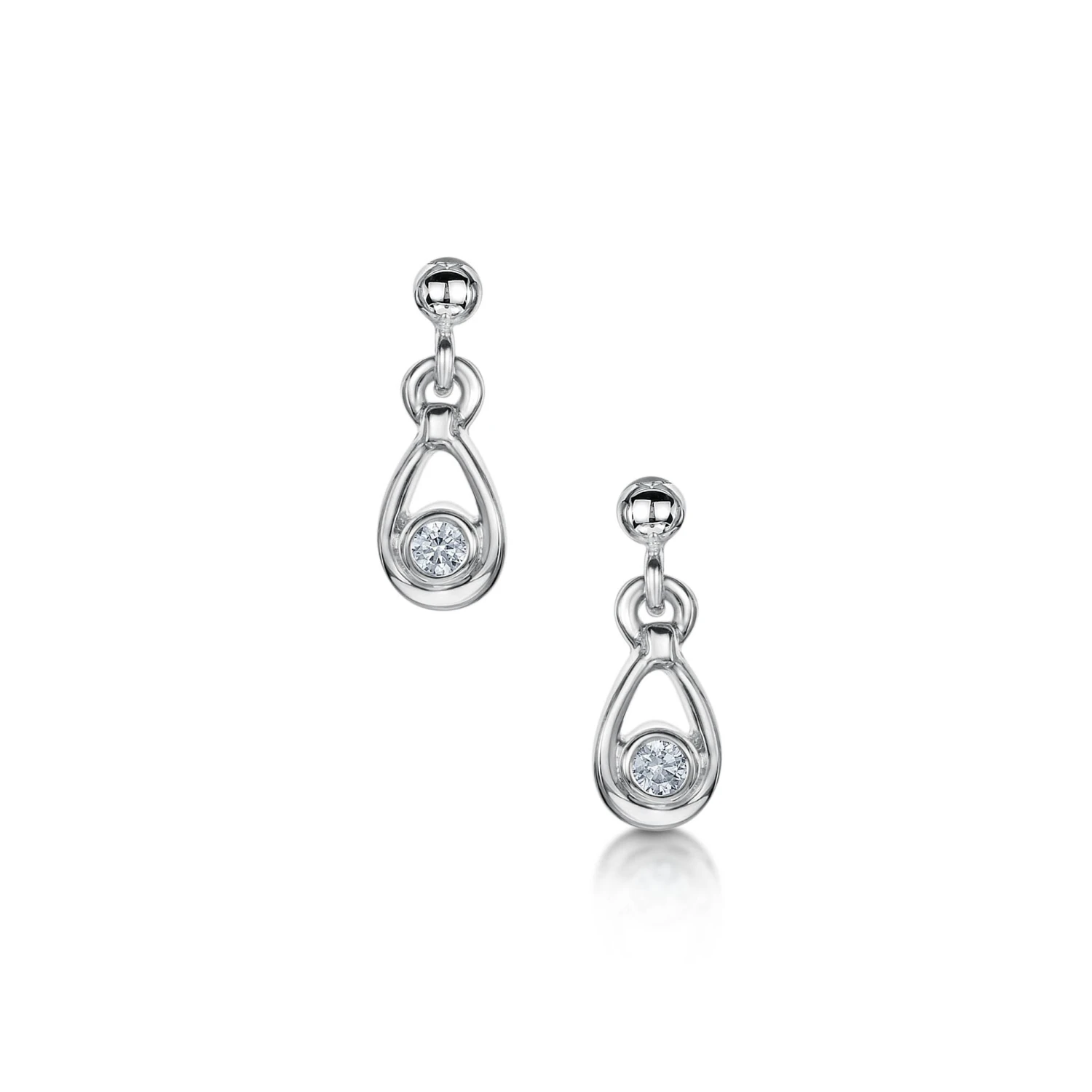 Based on a design feature in Sheila’s stone-set opalescent Arctic Stream collection, these delicate silver droplet earrings, hand-set with cubic zirconias, represent the sparkle of glacial ice, water and rock. Each droplet measures approximately 5mm by 15mm and is set with a 2.5mm cubic zirconia.