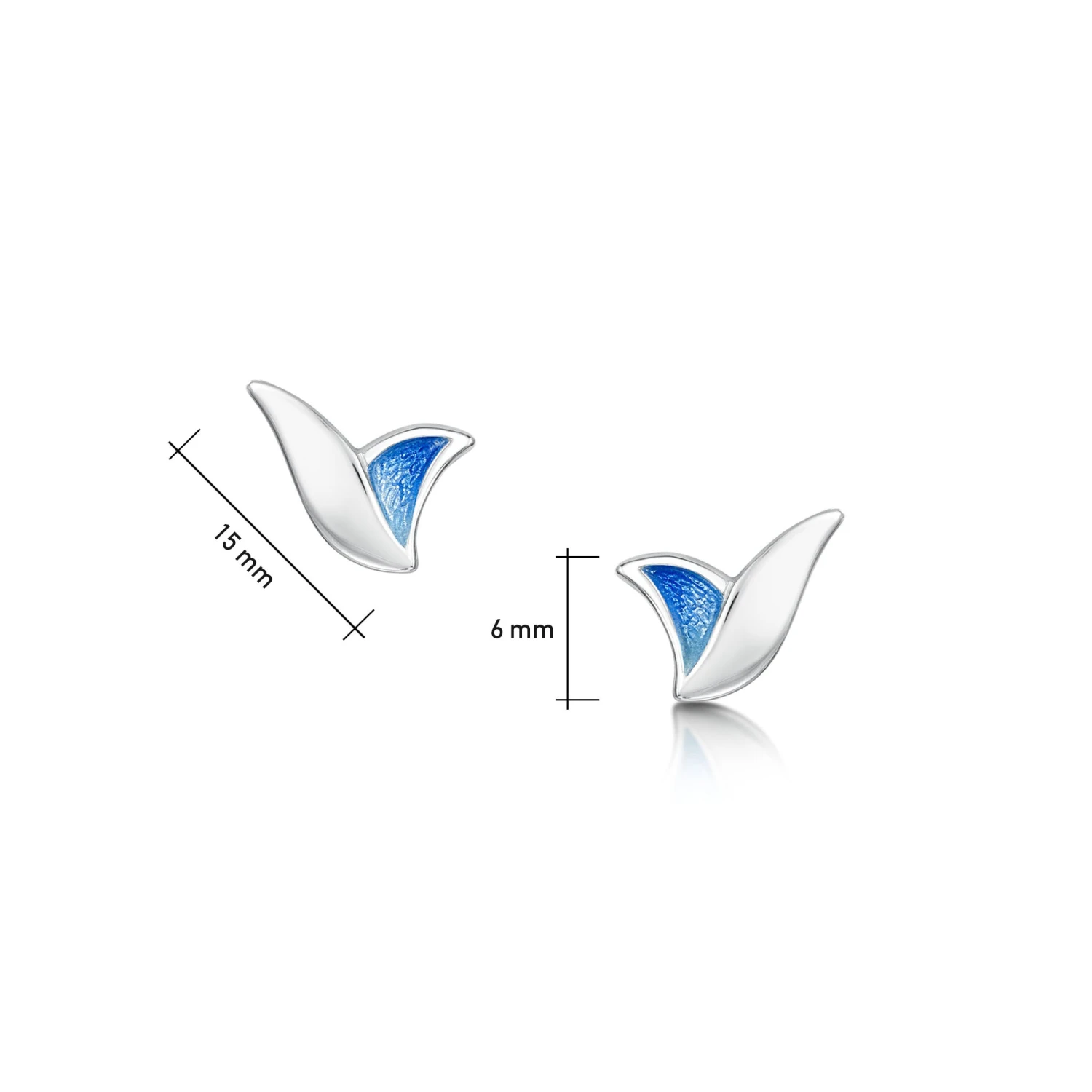 These sterling silver Flight stud earrings are hand-enamelled in Sheila’s Sky colourway at our Orkney workshop, and measure approximately 15mm by 6mm.