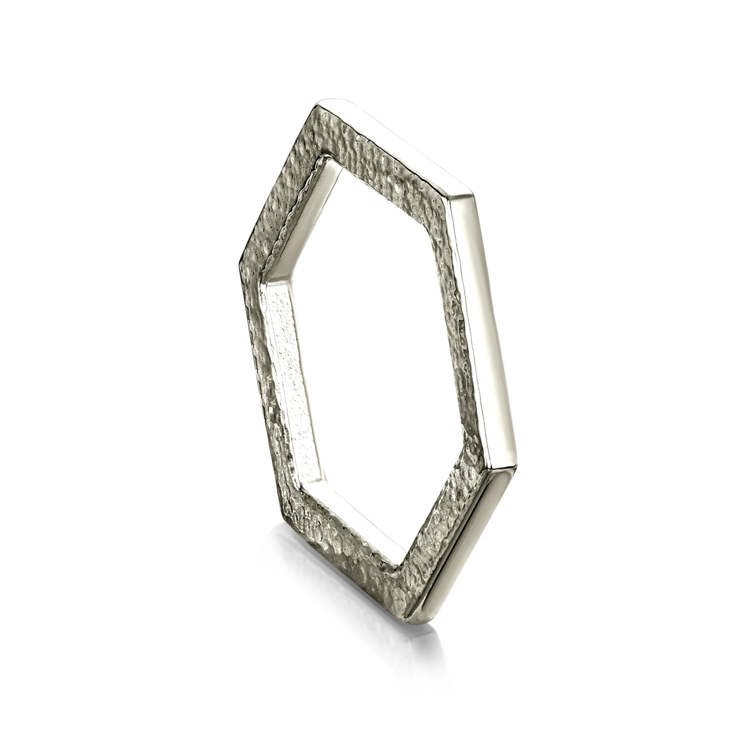 This Honeycomb Hexagon ring in platinum is hand-finished in our Orkney workshop and features a beautifully textured surface. The contemporary ring is ideal for stacking and is a perfect complement to Sheila’s Honeybee jewellery collection.