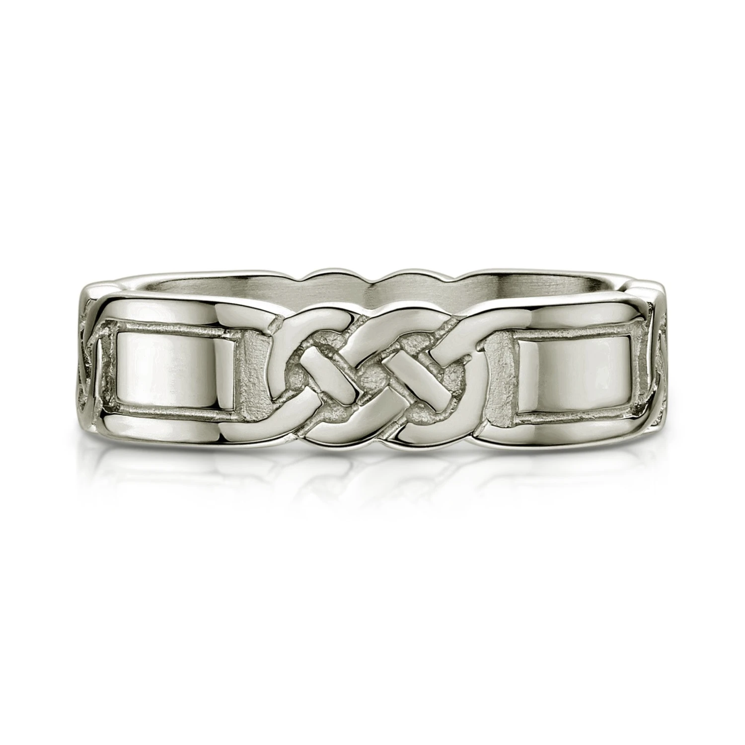 This Lover’s Knot Dress Ring in platinum features multiple double knot designs spaced evenly around the ring.