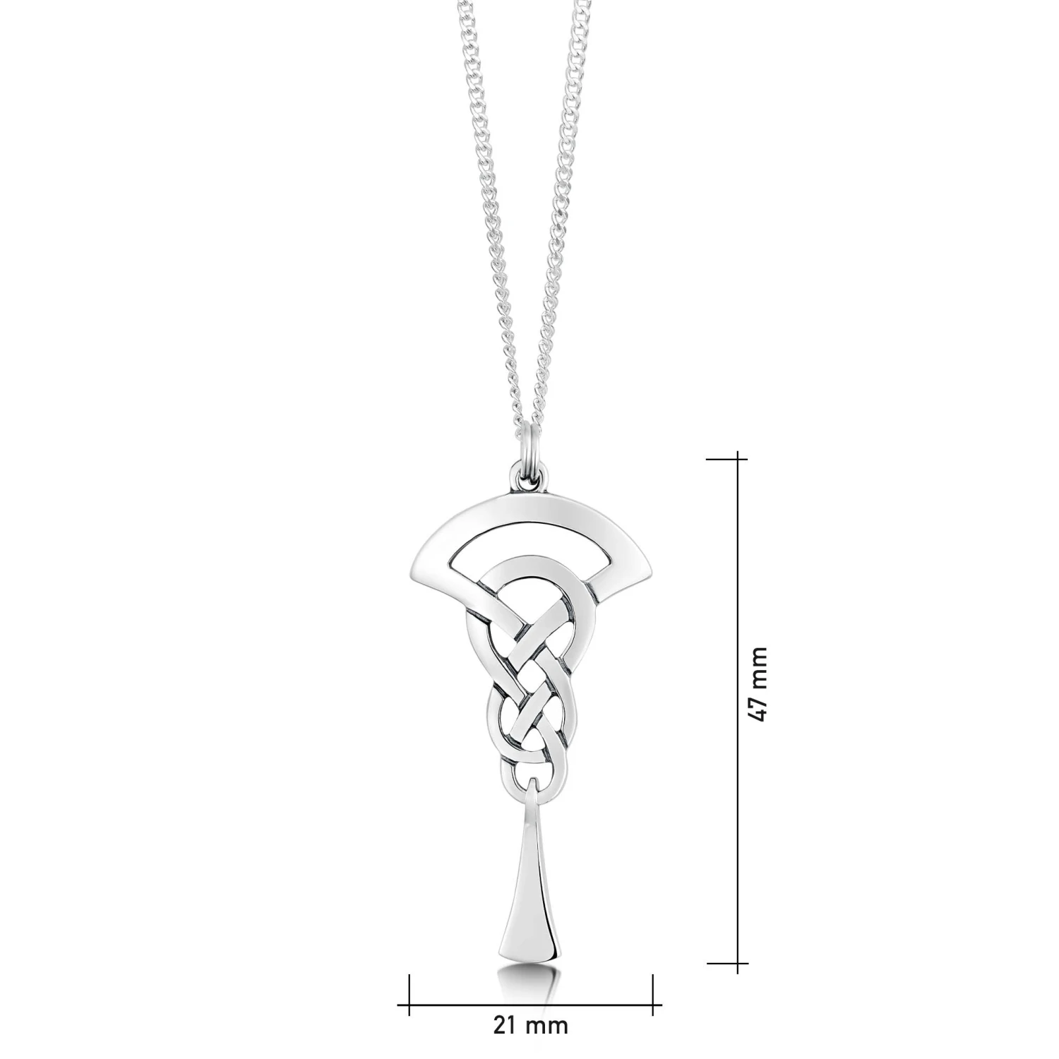 This Lover’s Knot pendant necklace in sterling silver is enhanced with a solid silver droplet that moves independently when worn. The necklace is hand-finished in our Orkney workshop and hangs elegantly from a silver curb chain.