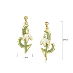 Snowdrop 18ct Yellow Gold Drop Earrings In Opal White Enamel