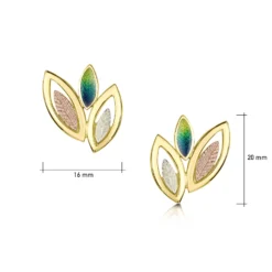 Seasons Spring Enamel 3-leaf Stud Earrings In 18ct Yellow, White & Rose Gold