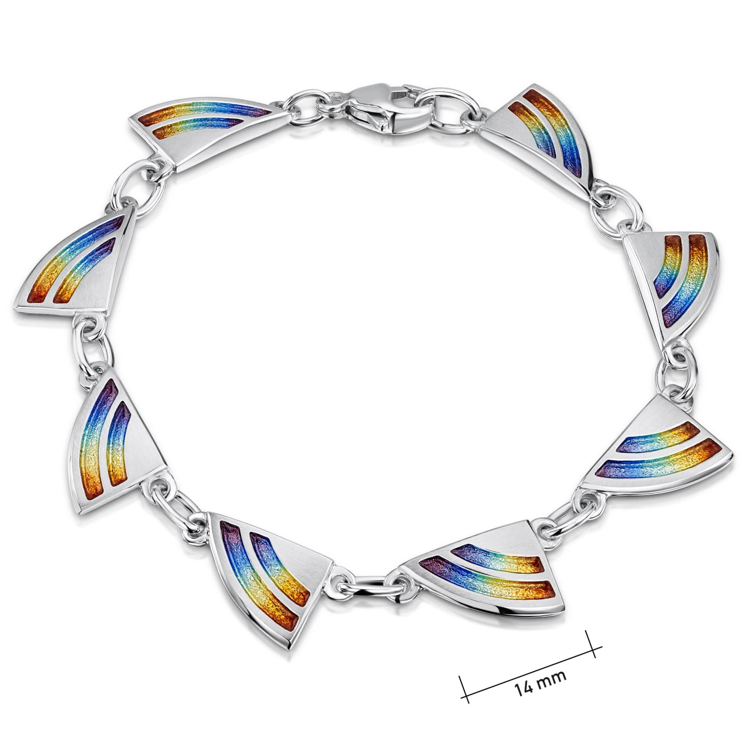 This Rainbow bracelet in sterling silver features eight rainbow links each hand-enamelled in bright ‘Rainbow’ enamel. The design is hand-finished in our Orkney workshop.