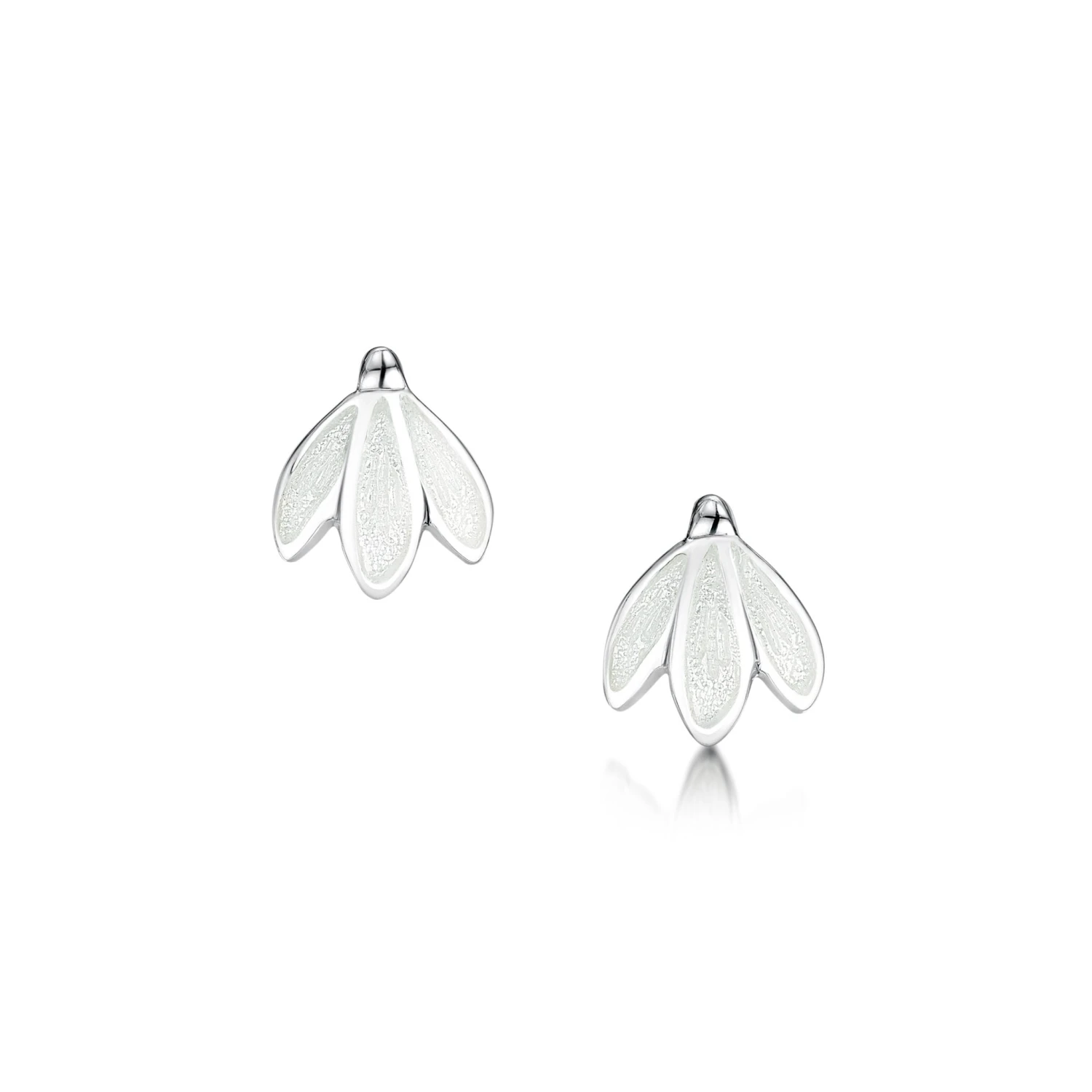 These sterling silver Snowdrop Stud Earrings feature a single flowering snowdrop, hand-enamelled at our workshop in Orkney. The earrings are hand-enamelled in ‘Crystal’ enamel in our Orkney workshop.