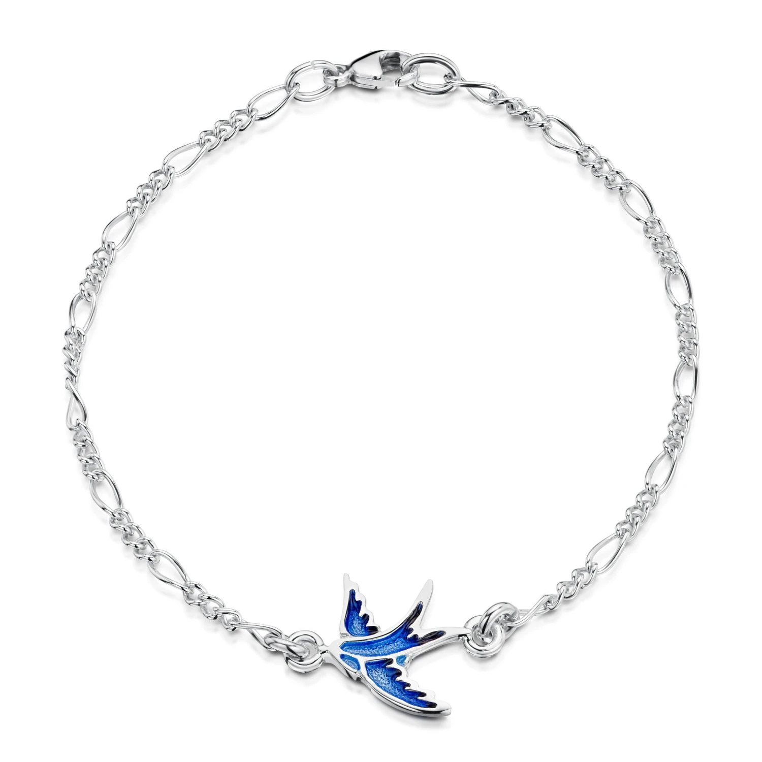 This sterling silver Swallows Bracelet features an enamelled swallow in flight, hand-finished in our Orkney workshop. The design is hand-enamelled in ‘Sapphire’ enamel.